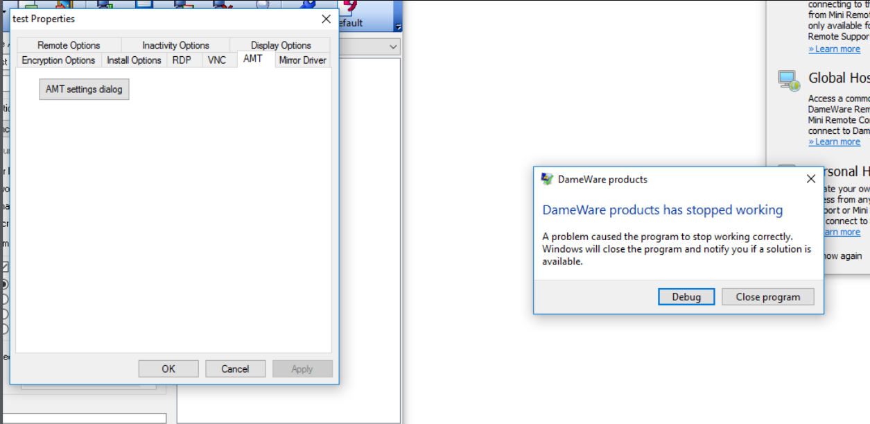 One of the windows (AMT Settings) within in the GUI has several input fields. The majority of these fields lack appropriate input sanitization, leading to crashes when entering a large amount of input (more than 3,000 characters). However, for the proof of concept, only one of these fields was used; the “Host” field under the SOCKS Proxy Settings.